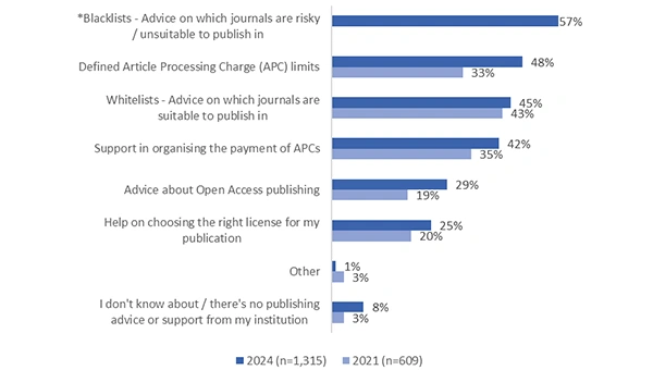 Figure 2: Q. ‘What kinds of advice and support for publishing have you received from your institution, if any?’